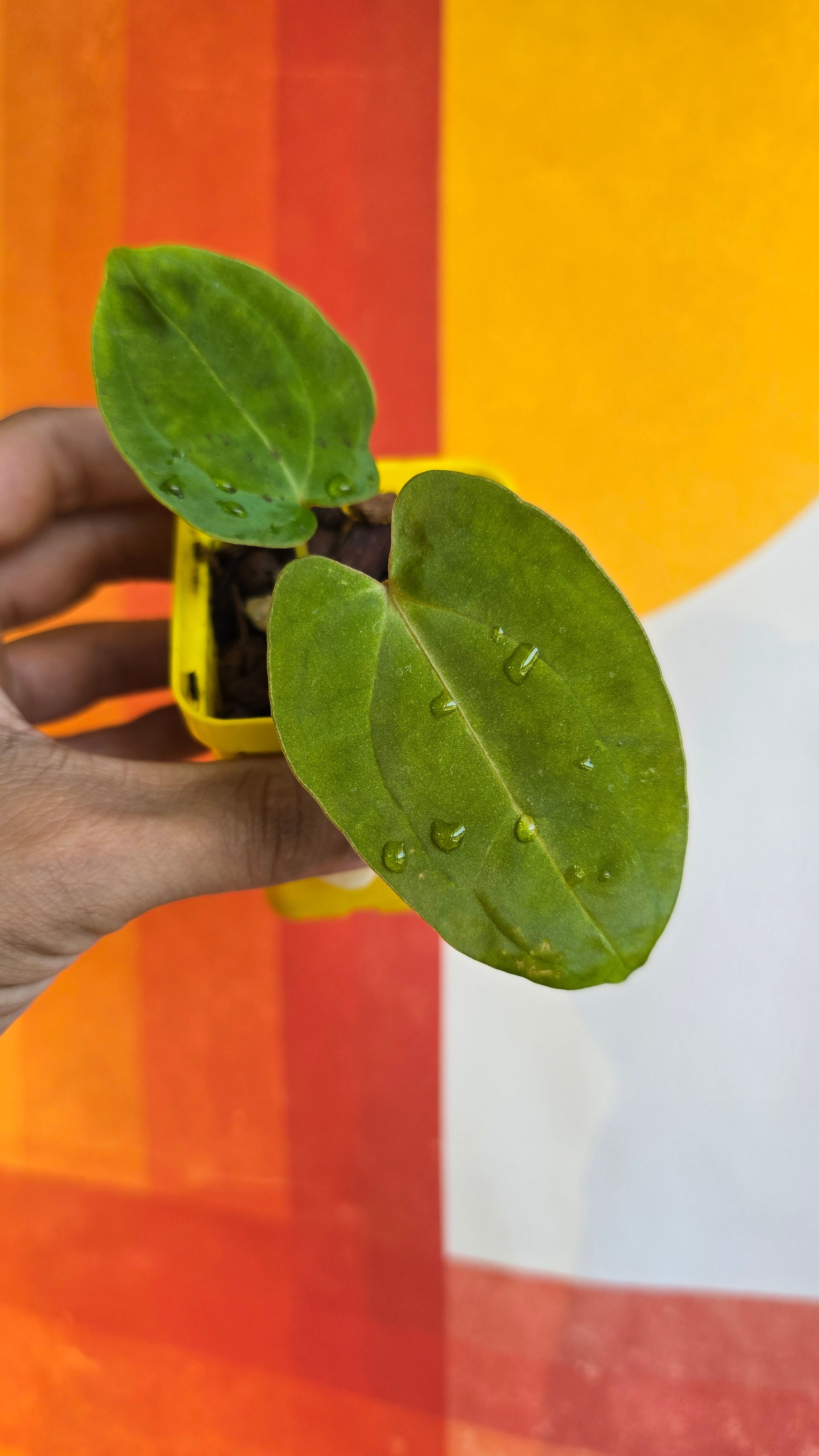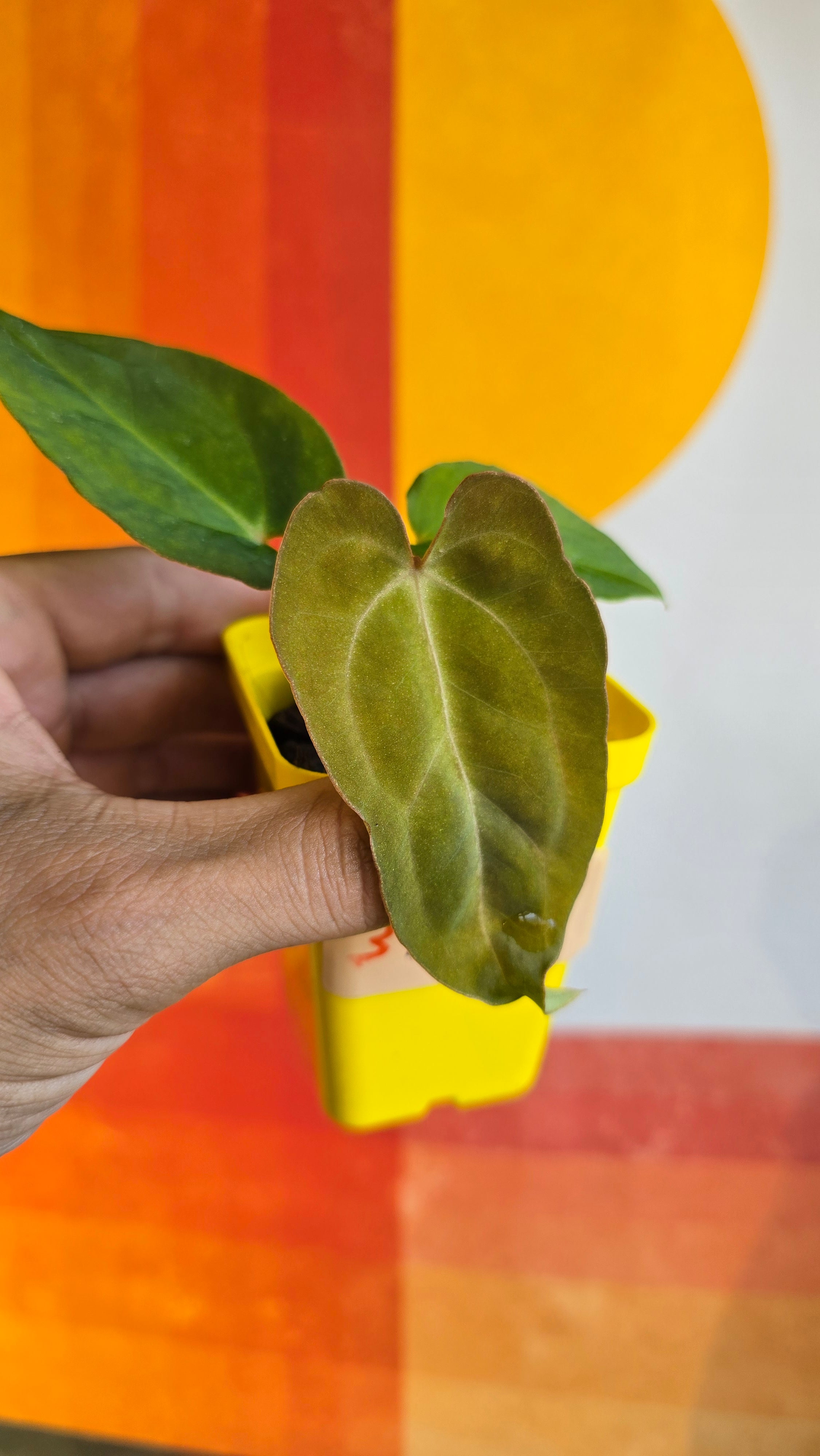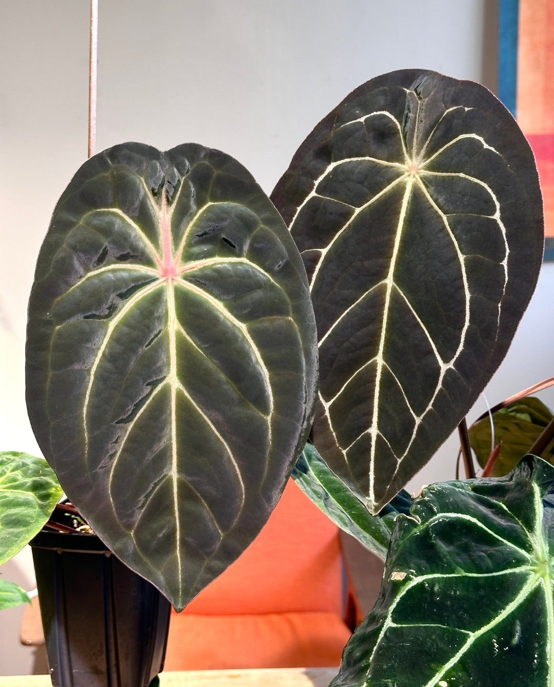 ‘Carlos’ (carla x pap 'RL’) The parent characteristics are showing through. It has dark velvet leaves with pink emergent veins that fade to a light pink when hardened. Many of the hybrids from this mother have pink to purple veins with the same dark velvet foliage.