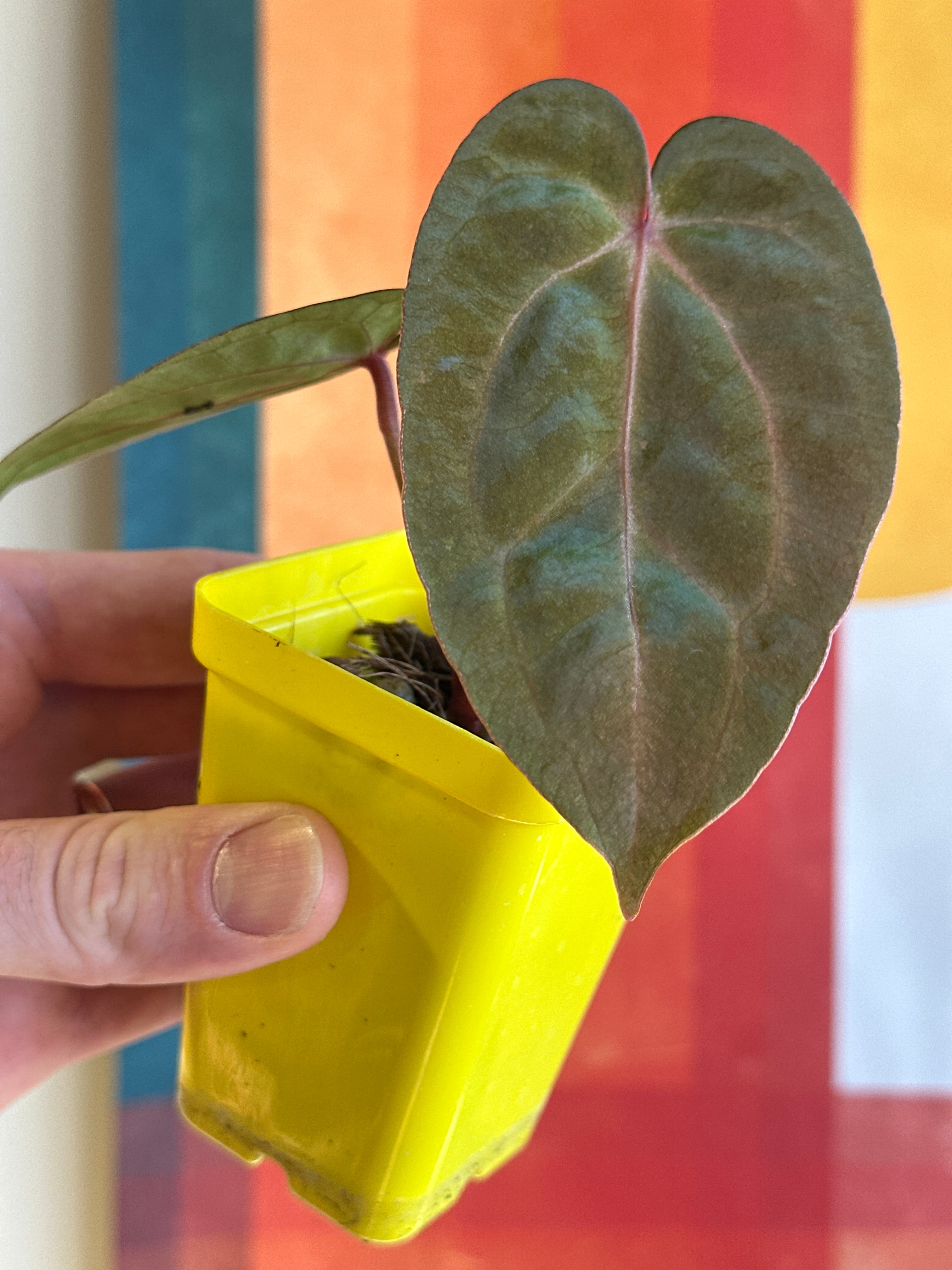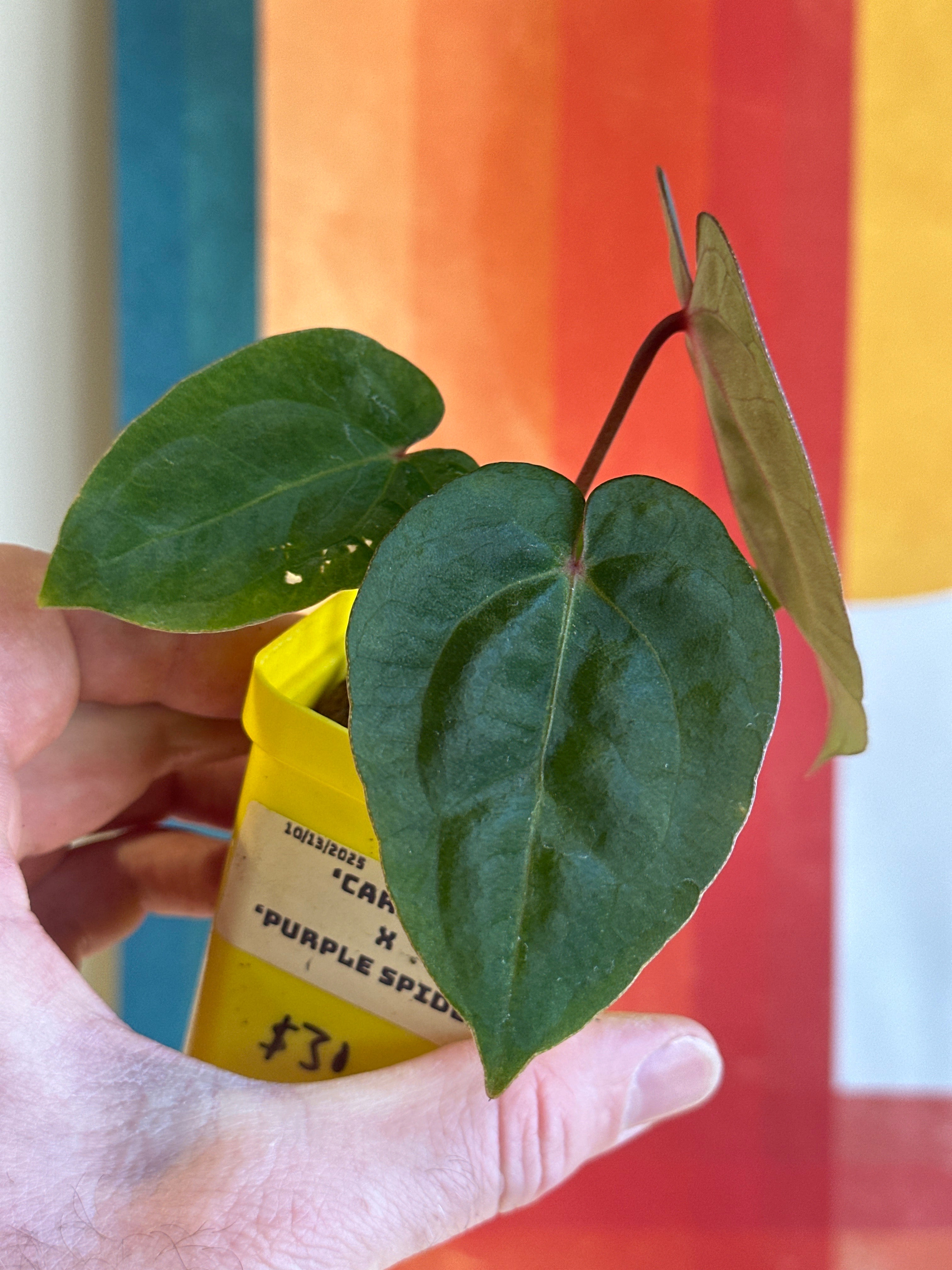 ‘Carlos’ (carla x pap 'RL’) The parent characteristics are showing through. It has dark velvet leaves with pink emergent veins that fade to a light pink when hardened. Many of the hybrids from this mother have pink to purple veins with the same dark velvet foliage.