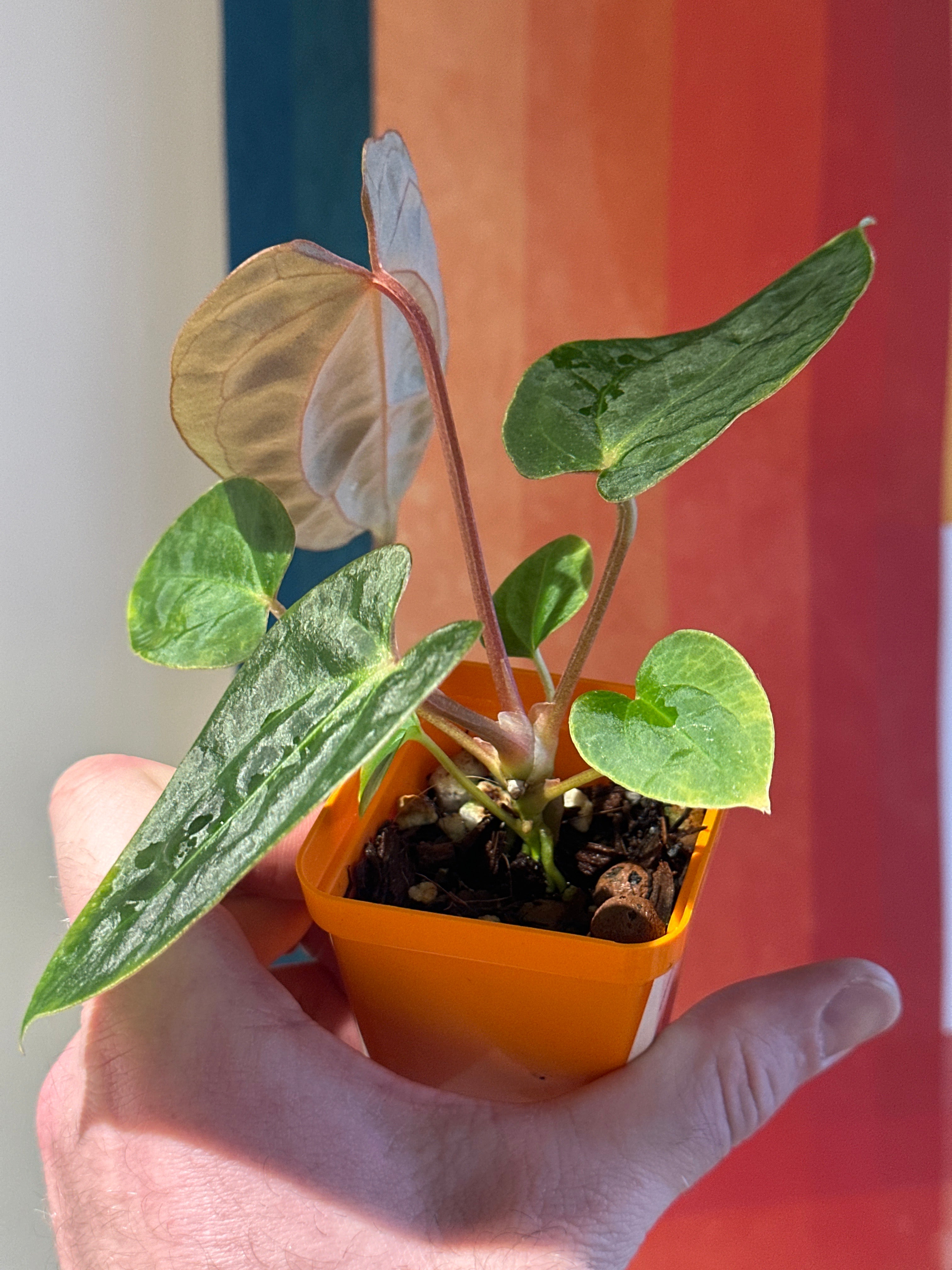 ’Purple Spider’ - is our favorite keeper from our 'Purple Magaos' x 'Ace of Purps' seed family. It inherited the fused lobes and the dark velvet leaves from the ‘Purple Magaos’ and the dark leaf color and purple veins from ‘Ace of Purps’. So far Hybrids with these are showing great promise.