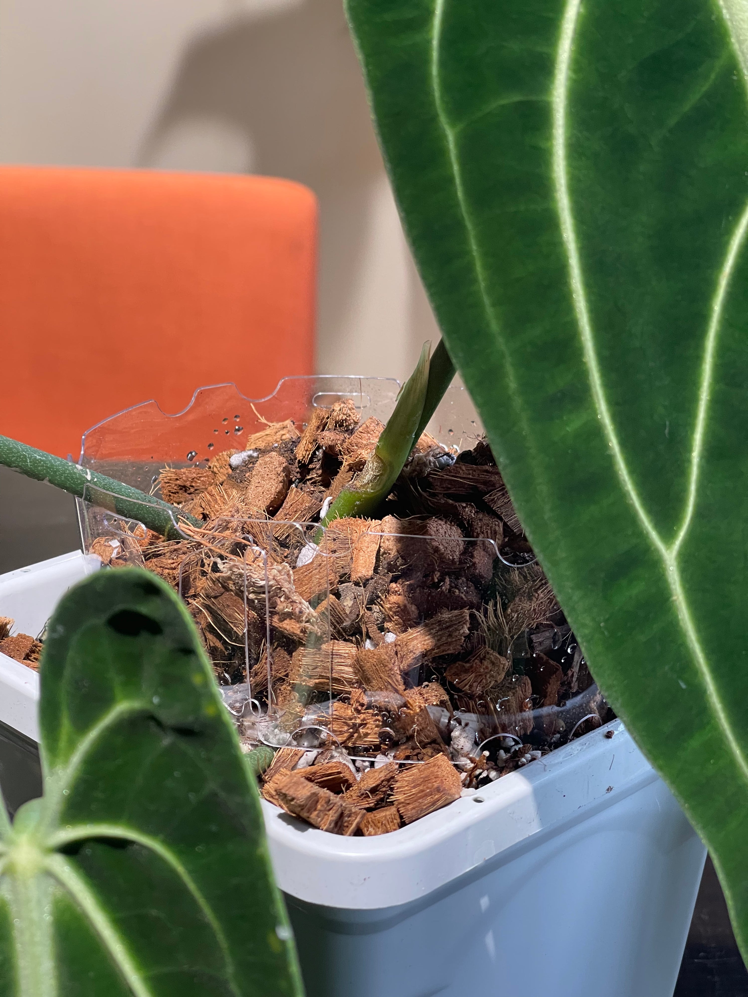 Rotate the pot extender so that the petioles are aligned with a groove.