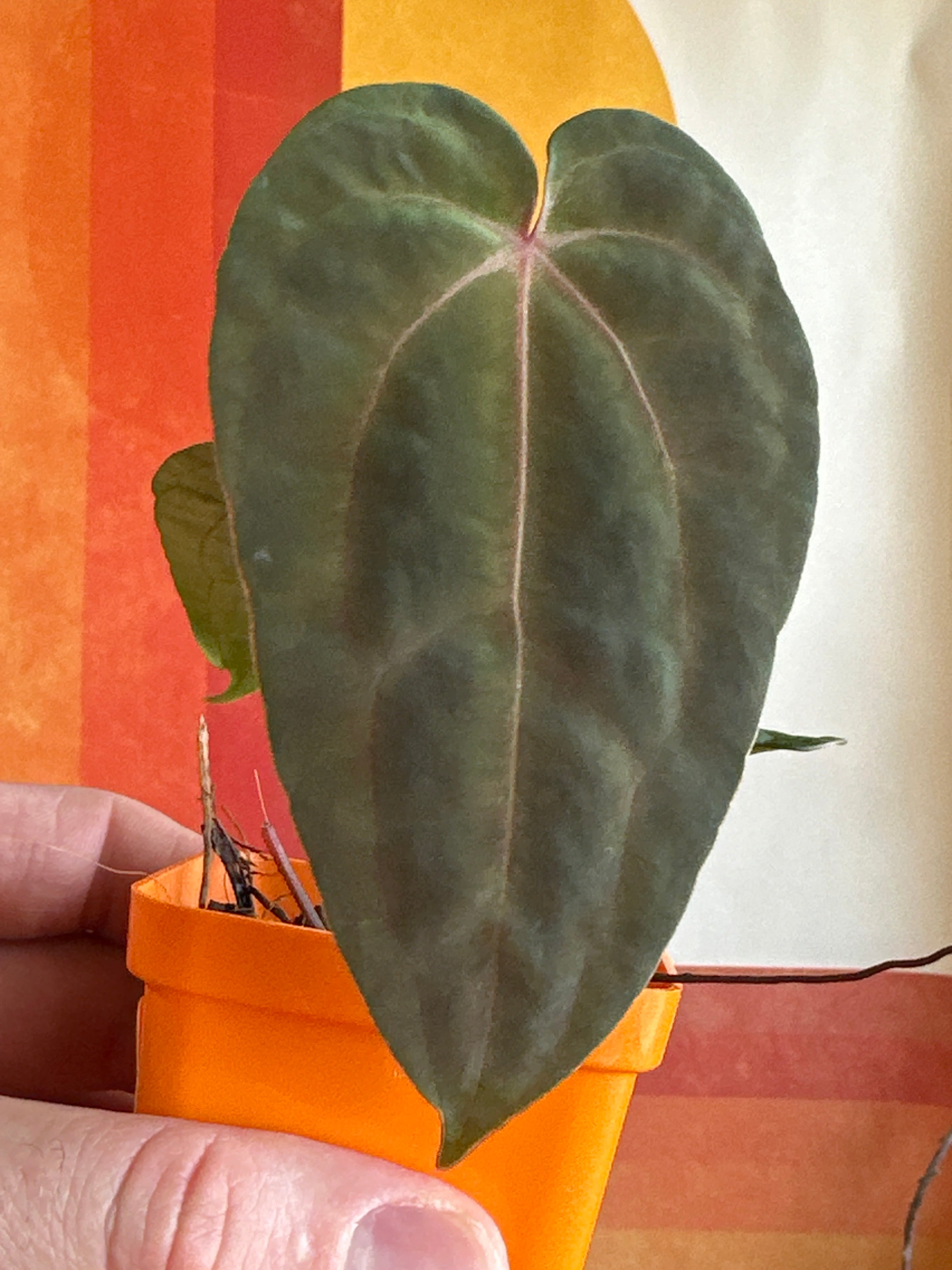 ‘Carlos’ (carla x pap 'RL’) The parent characteristics are showing through. It has dark velvet leaves with pink emergent veins that fade to a light pink when hardened. Many of the hybrids from this mother have pink to purple veins with the same dark velvet foliage.