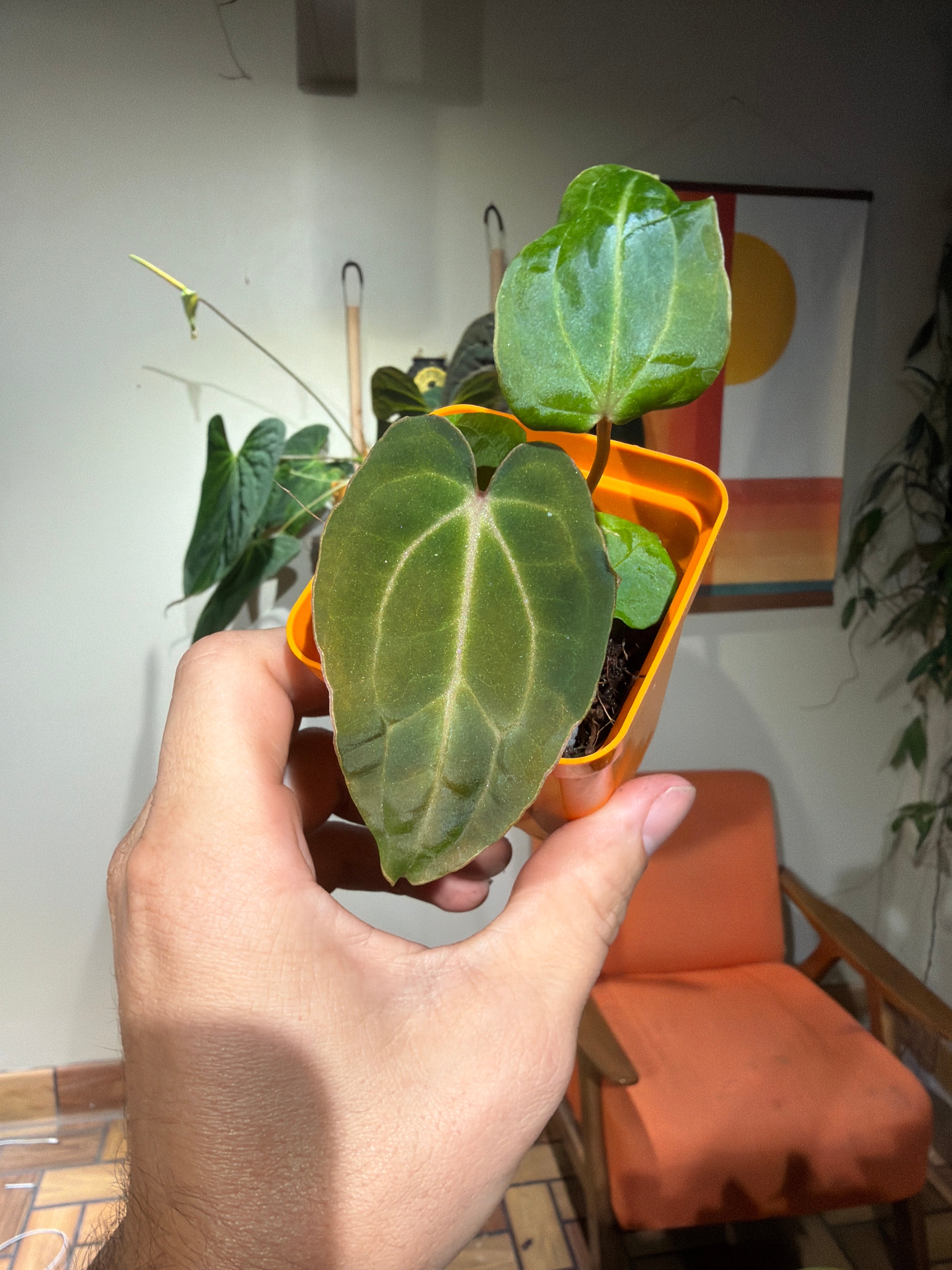 ‘Carlos’  (carla x pap 'RL’) The parent characteristics are showing through. It has dark velvet leaves with pink emergent veins that fade to a light pink when hardened. Many of the hybrids from this mother have pink to purple veins with the same dark velvet foliage.