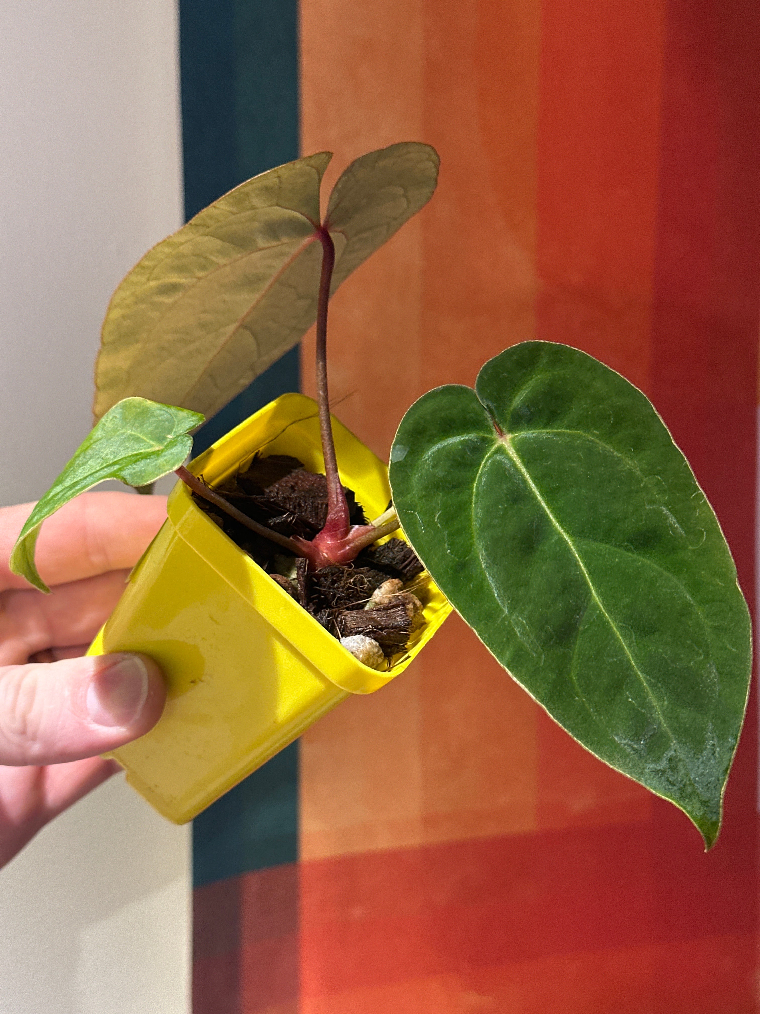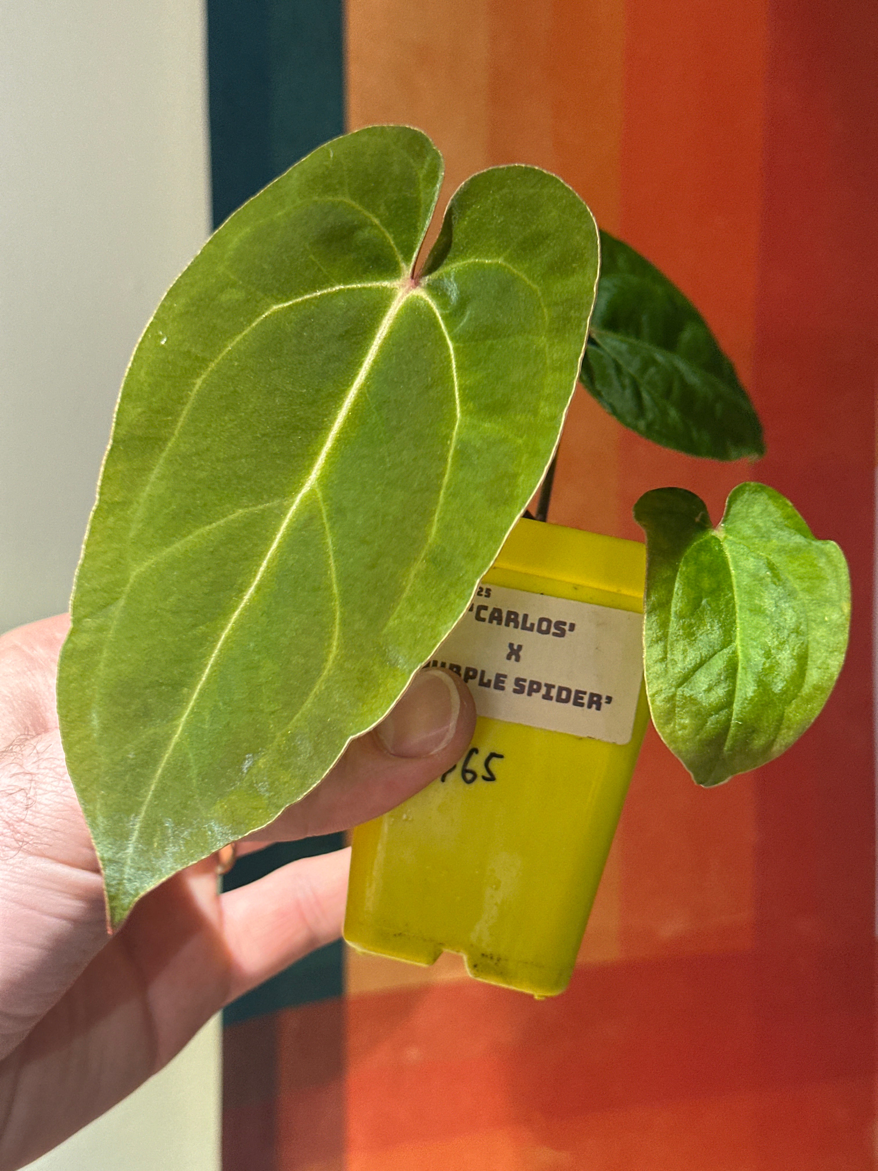 ‘Carlos’ (carla x pap 'RL’) The parent characteristics are showing through. It has dark velvet leaves with pink emergent veins that fade to a light pink when hardened. Many of the hybrids from this mother have pink to purple veins with the same dark velvet foliage.